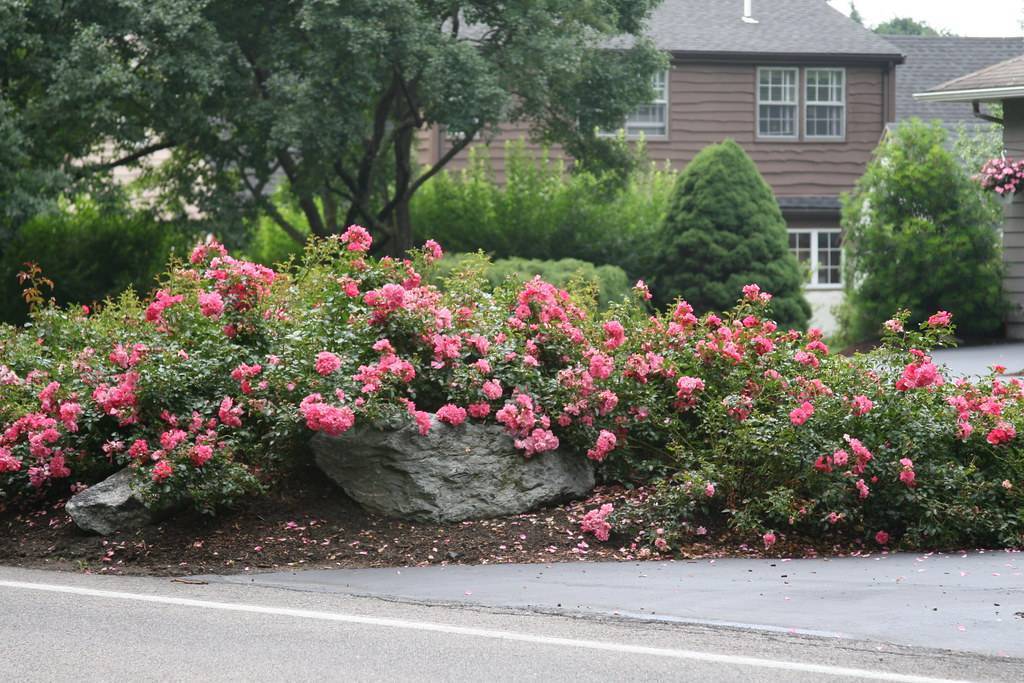 Также небольшие по высоте почвопокровные розы хорошо подходят для оформления альпинариев, откосов, рокариев, оврагов и различных подпорных стенок. В таких композициях желательно подбирать сорта с одинаковым размером розочек, соцветий, но различных окрасок. Также в этих композициях можно использовать и другие декоративные кустарники (спиреи, можжевельники, барбарисы, айву японскую, кизильники и другие).