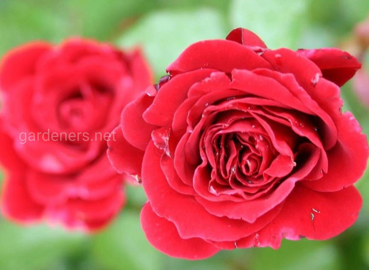 - Квадра — ярко-красная роза с крупными, густомахровыми цветками, собранными в небольшие соцветия. Высота куста достигает 2 м. Отличает этот сорт насыщенный фруктовый аромат и форма бутонов, характерная для старинных роз — цветки можно условно разделить на 4 части.