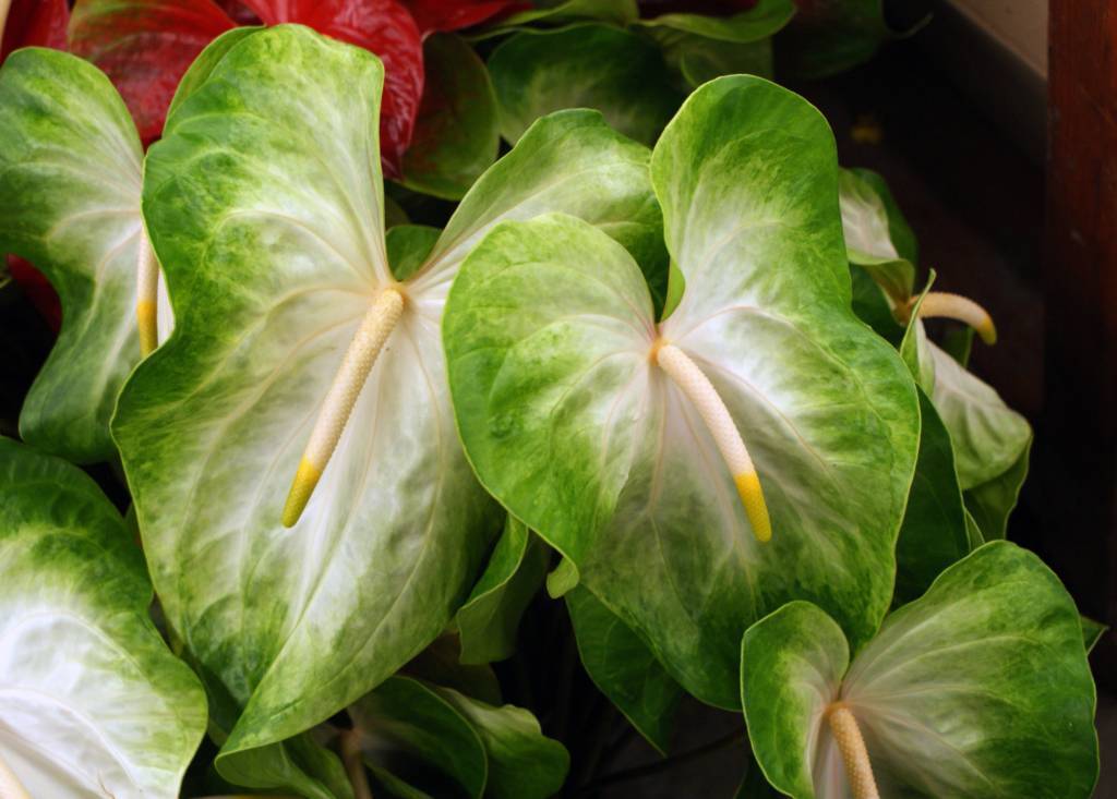 Вариегантные сорта антуриума имеют в своем строении некоторое количество клеток мутантов, которые не могут вырабатывать хлорофилл. Из-за этой особенности части растения, имеющие большое количество таких клеток, остаются белыми или заметно светлее основного цвета листа.