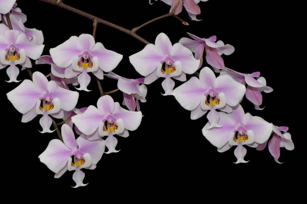 | Фаленопсис Стюарта (Phalaenopsis Stuartiana) | до 80 см | пестрые с рисунком под мрамор | до 60 шт., белые с красноватыми пятнами у основания |