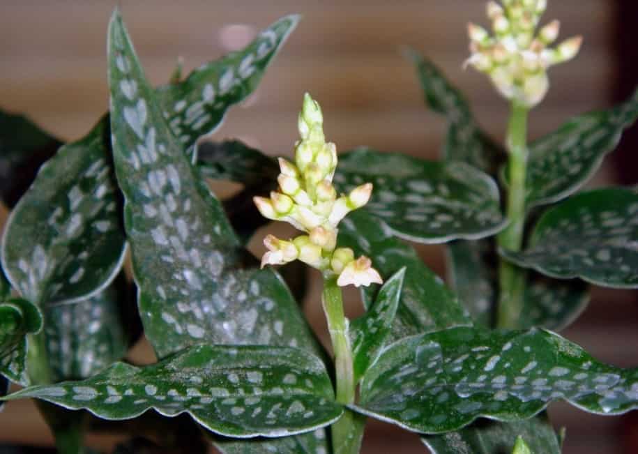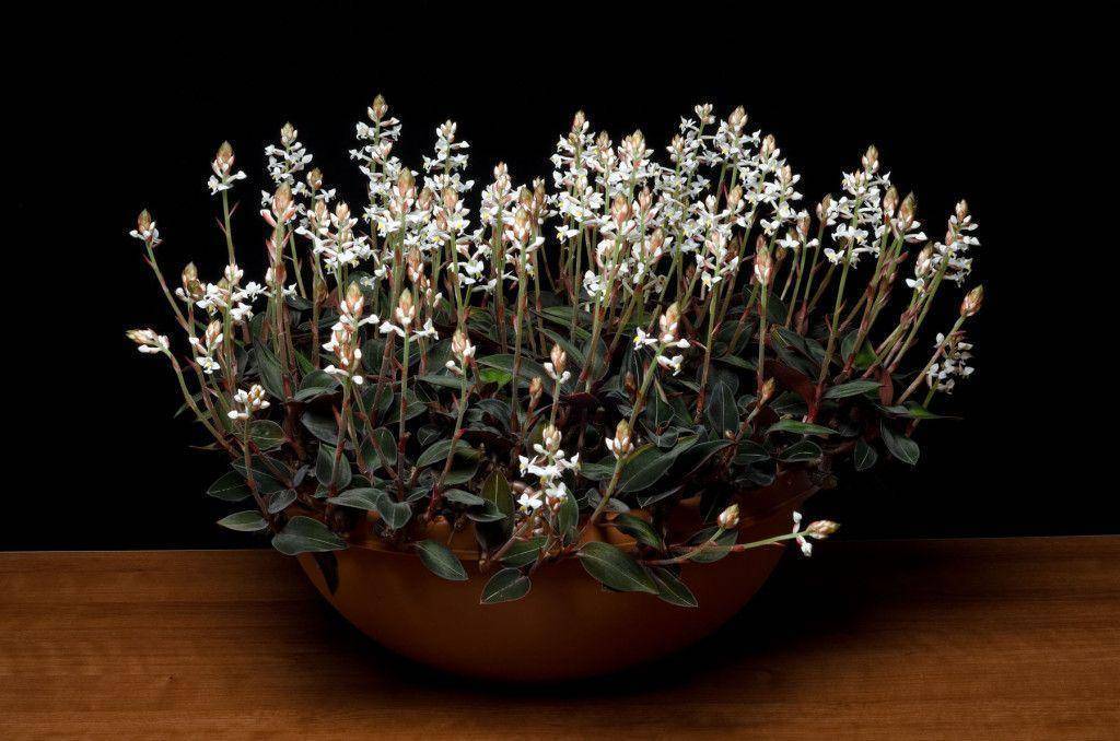 На ощупь листки будто велюровые, покрыты тонкими серебристыми жилочками – только одной продольной или с ответвлениями. Цветет мелкими ароматными цветочками, собранными в малочисленное соцветие. Лудизия драгоценная особенно любима среди орхиеводов, в частности популярны ее формы: