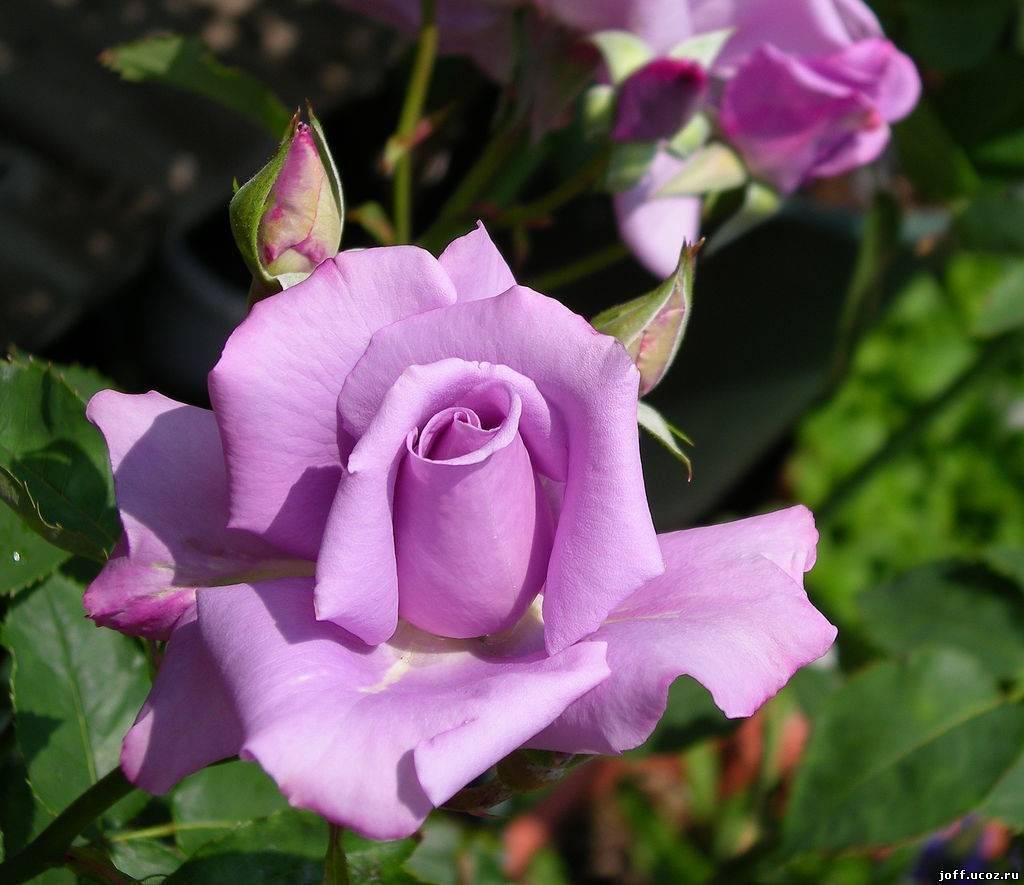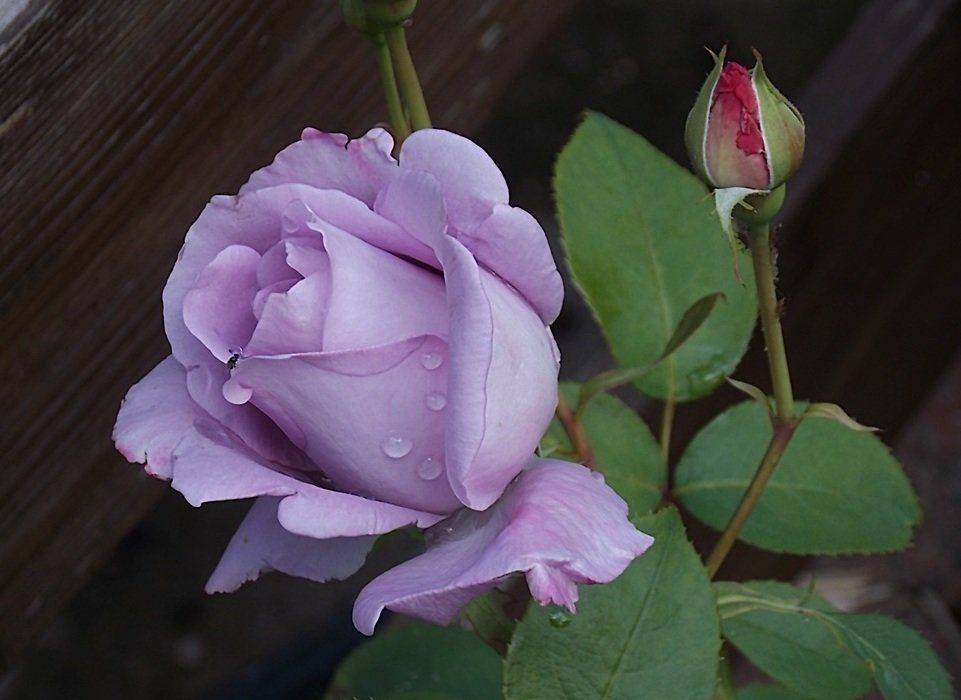 Обратите внимание! Нежный сиреневый окрас бутонов розы можно подчеркнуть, сажая рядом с ней растения с цветками более светлой палитры