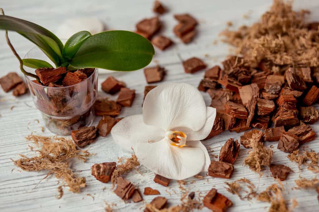 В магазинах продаются грунты для орхидей на основе сосновой коры. Вы также можете заготовить кору с упавших деревьев. Для посадки фаленопсис пригодны кусочки размером 1-3 см. Кора не должна содержать смолу и хвойные опилки, её необходимо промыть и обварить кипятком.