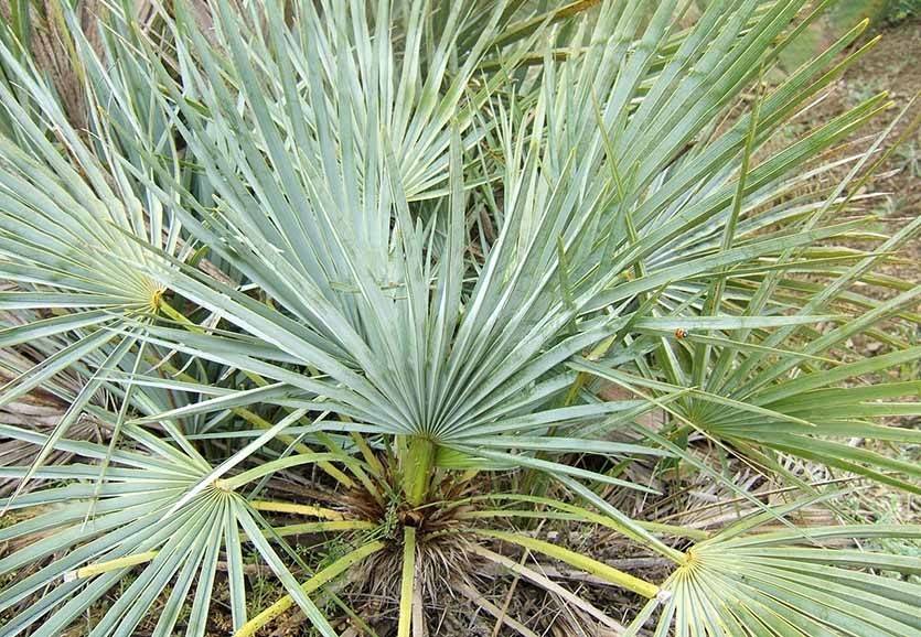 - Chamaerops humilis var.argentea André (син.C. h. var.cerifera ) — «горная пальма Атласа» Северо-Западной Африки. Листья сизые.