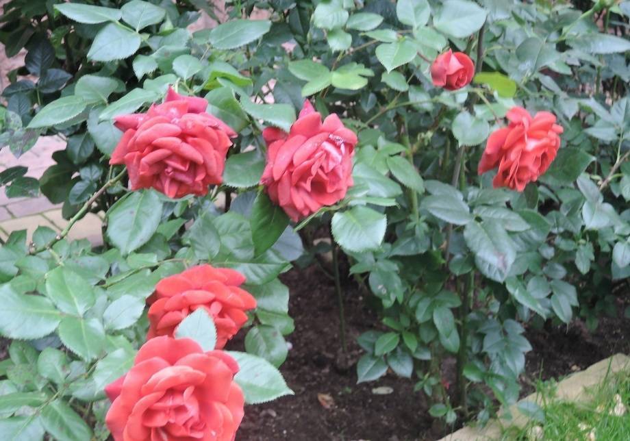 Цветки их часто напоминают по форме чайно — гибридные сорта, собранные небольшими соцветиями на концах побегов, цветут непрерывно, очень обильно на протяжении всего лета.