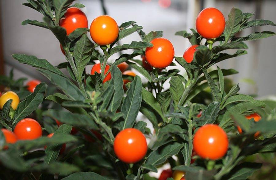 Это растение привлекает цветоводов-любителей не только красивыми темно-зелеными листьями. У него мелкие цветы и яркие плоды, которые в зависимости от сорта могут быть красного, желтого или оранжевого цвета. У разных сортов этого растения плоды отличаются и размерами. Особенностью паслена является то, что при правильном уходе плоды долго держатся на кустике и придают ему декоративный вид. А так как поспевают они преимущественно в зимний период, солянумом можно любоваться на Рождество и на Новый год.