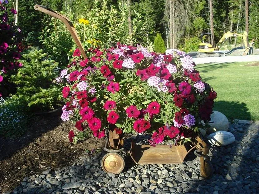 Клумбы из петуний в ландшафтном дизайне смотрятся лучше всего у парадного входа в дом или по бокам подъездной дорожки. Освещенные солнцем пустующие узкие террасы переоборудуют под цветники. Культуры станут логичным продолжением композиции с малыми архитектурными формами. Яркие виды уместны рядом с лавочками, беседками в зоне отдыха.