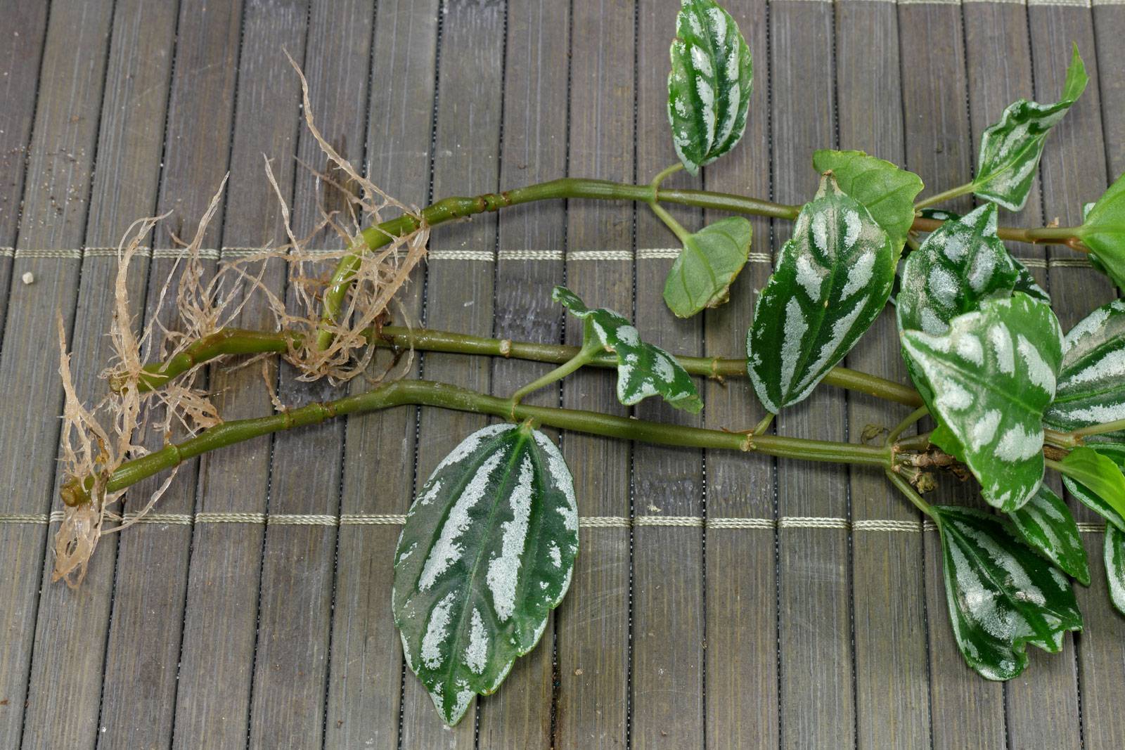 Это растение более чем легко размножать верхушечным черенками. Если срезать вершины тонких побегов длиной до 10 см с 2-3 парами листьев и просто поставить их в воду, прикопать в песок или высадить их по 5-6 шт в подходящий субстрат в небольшом горшке, то пилея быстро укорениться и создаст очаровательные кустики в поразительные сроки. Черенкование можно проводить буквально в течение всего года, даже зимой. После укоренения растения приучают к обычным условиям постепенно, вначале на 1-2 недели помещая в более притененное и прохладное место, а уже затем переставляя на обычную локацию.