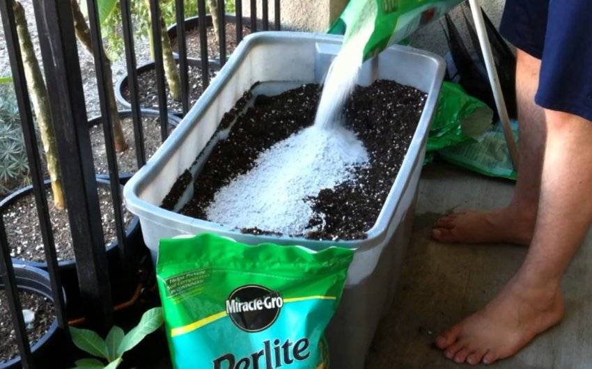Горшок наполняют сначала смесью (для пересадки), 1/3 перлитом, потом вновь смесью.
