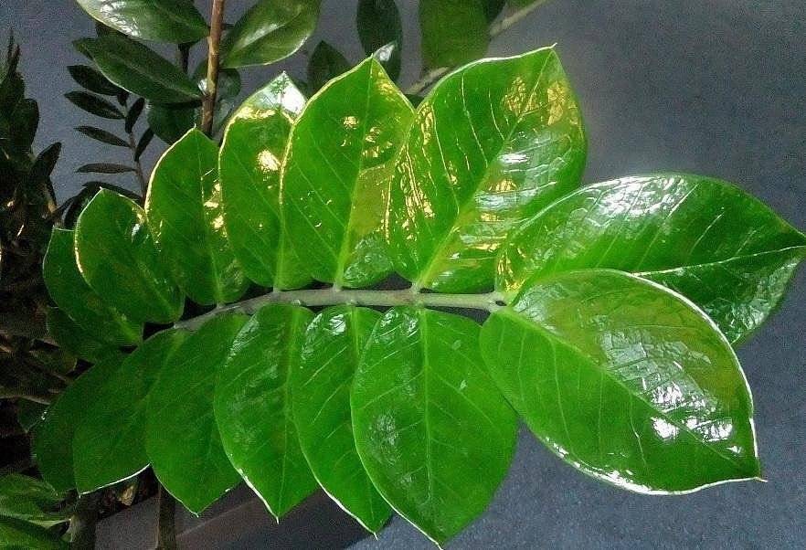 Листовые пластины замиокулькаса покрыты защитным воском, который препятствует испарению влаги