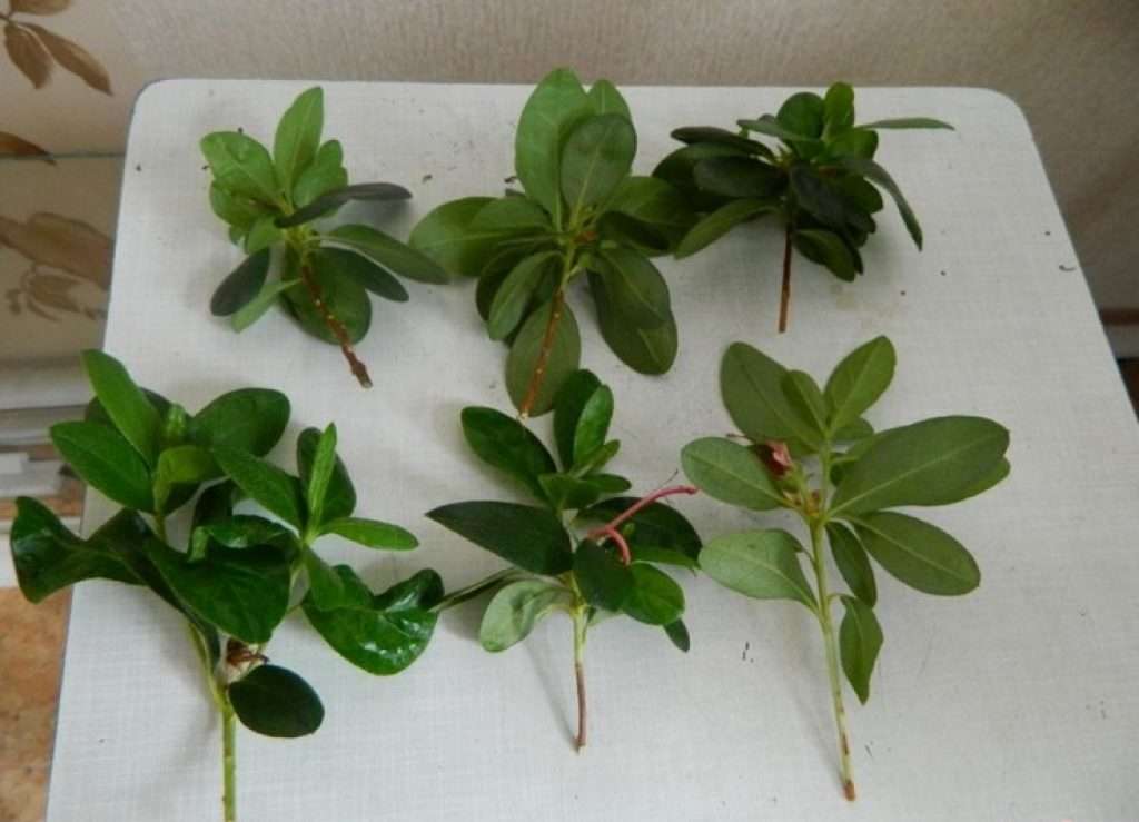 Для укоренения черенки готовят в первой половине весеннего сезона. Для этого нарезают верхушечные стебли длиной около 10-12 см, на которых удаляют почку и пару нераспустившихся листиков с нижней части черенка. Затем нижний конец надрезают под углом 45° С и опускают в корнестимулятор на несколько часов.