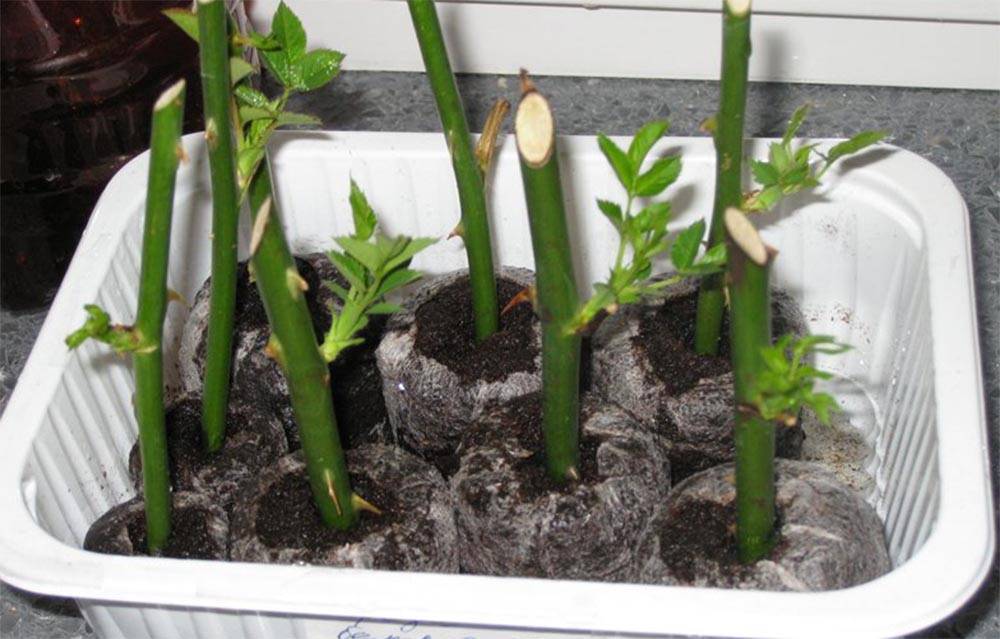 Из веток вырезают участки с двумя узлами с длиной от узла до среза 2-3 см. Контейнер наполняют торфяно-песчаной смесью. Черенок погружают в землю на 3 см. При этом нижний срез должен быть косым, а верхний прямым. Грунт поливают и закрывают полиэтиленом. За влажностью следят постоянно. После того, как черенки укоренятся, их пересаживают в открытый грунт.