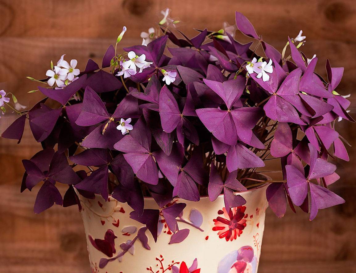 Второе название этого вида – кислица фиолетовая. Эта разновидность не переносит холодных температур, предпочитая тепло. По этой причине растение чаще встречается в качестве комнатного. Листья окрашены в темно-пурпурный цвет. Цветки мелкие, собраны в соцветия.