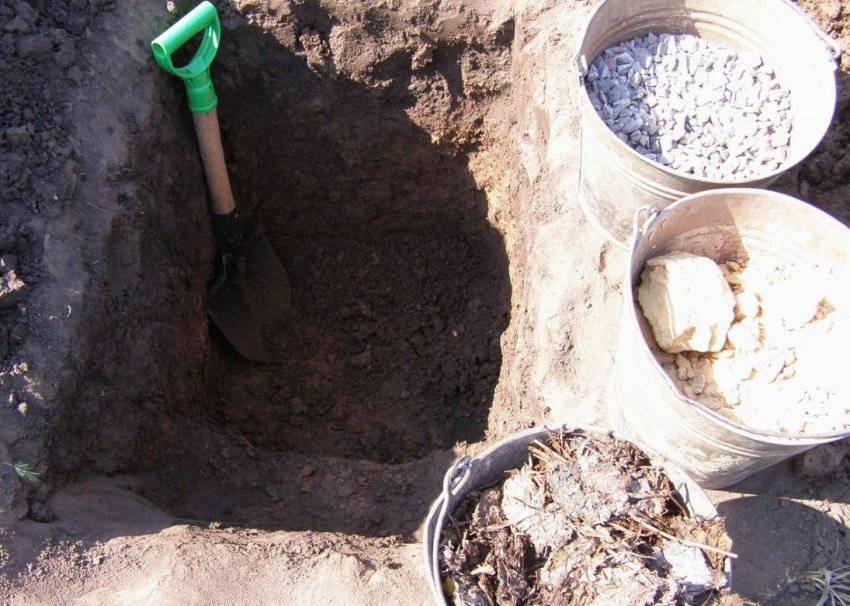 Выбрав место, которое не подтопляется грунтовыми водами, вскопать его, яму вырыть на глубину около полуметра, по советам опытных садоводов выстелить в яме слой из гравия, щебня или битого кирпича.