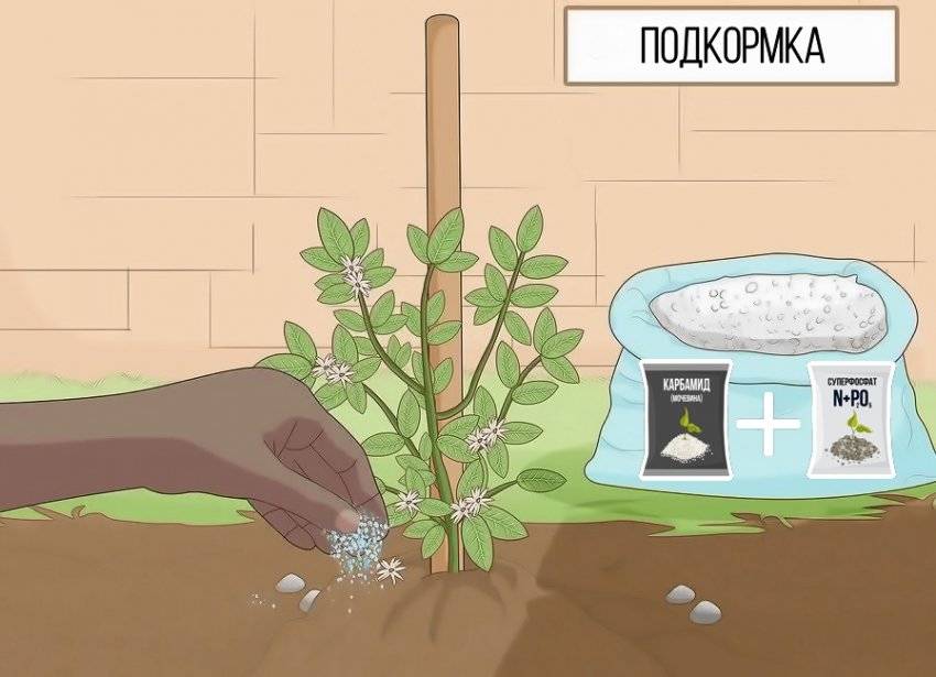 Для подкормки органикой готовят раствор навозной жижи (на ведро воды добавляют литр удобрения), поливают землю сначала чистой водой, после этого выливают приготовленный раствор. Чтобы приготовить минеральное удобрение, понадобится: