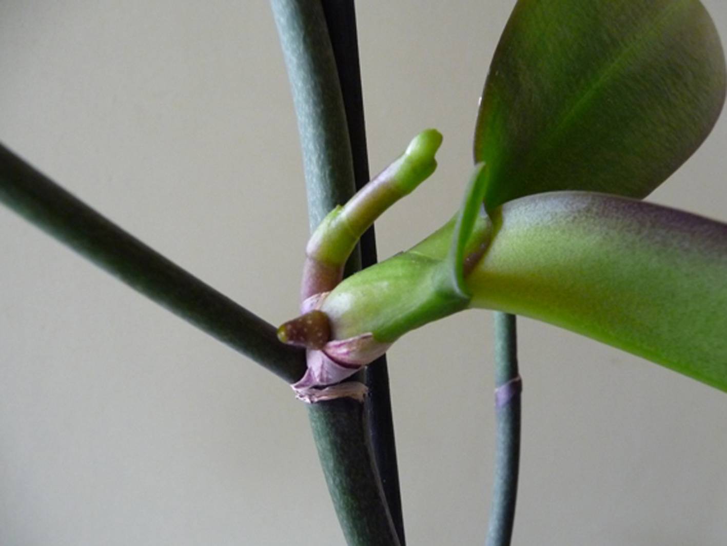Покрыта почка плотными чешуйками. На цветоносе Фаленопсиса, в зависимости от его роста, может находиться 2-3 ждущих почки. И на цветоносе это напоминает небольшой нарост или место соединения двух частей цветоноса.