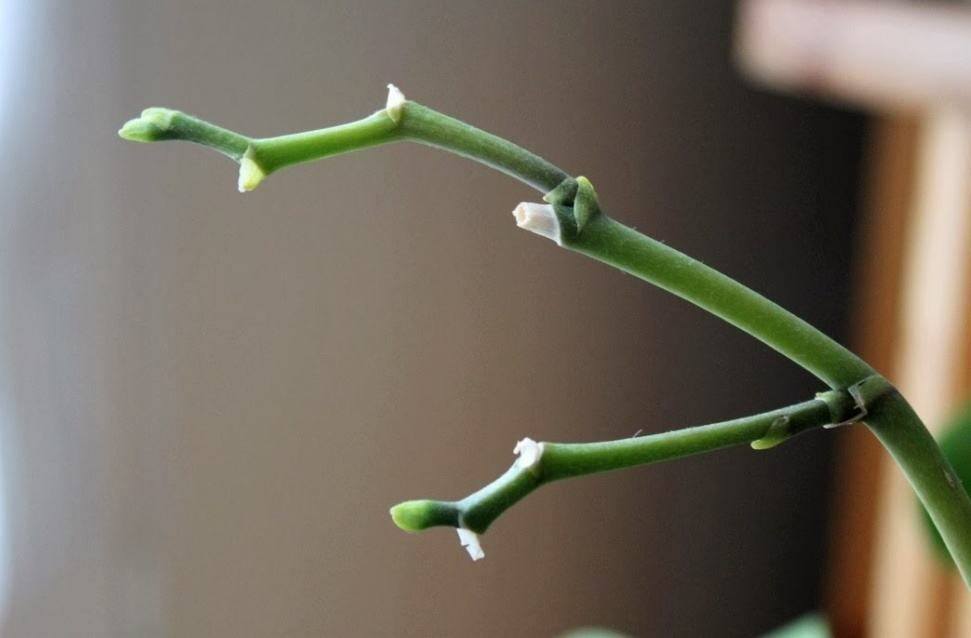 Если цветонос не потерял цвет и полностью не высох, на нём чаще всего есть спящие почки. При правильном уходе можно добиться формирования из них новых побегов. В этом случае проводят частичную обрезку: