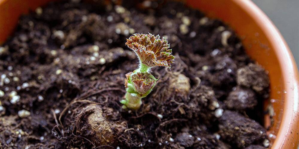 Не закапывайте клубень полностью. В ширину горшок должен быть довольно просторным: корень клубневой бегонии растет вширь, а не вглубь.