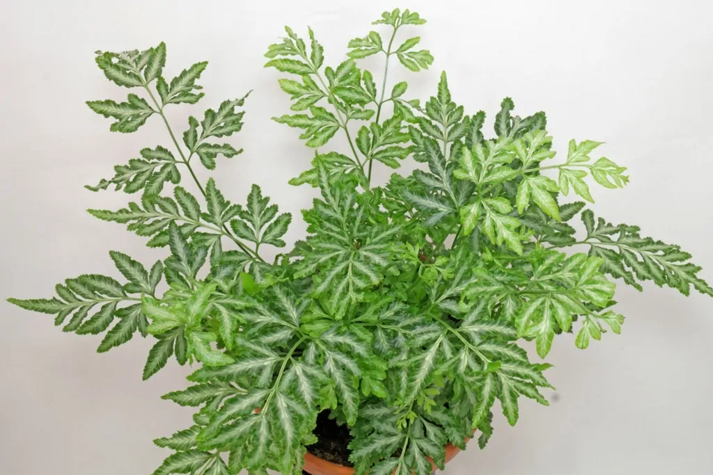 Изысканный вид, листья которого, напоминающие птичьи перья, нетипичны для папоротников. Имеет множество сортов, среди которых наибольшей популярностью пользуются белополосатый и серебристо-пятнистый. Листья вида очень крупные, до 50 см в длину, перистые рассеченные, с 2–6 сегментами.