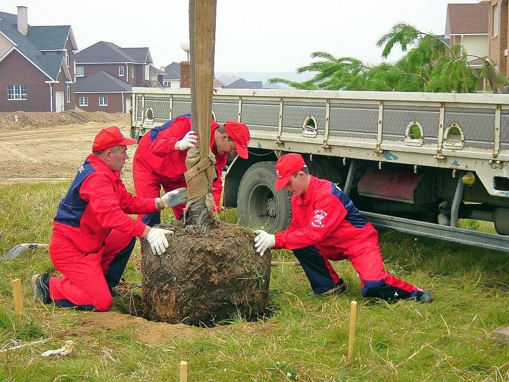 - Для посадки деревьев выше 4,5 м требуется специальная техника и оборудование, поэтому лучше обратиться в фирмы, которые специализируются на таком виде деятельности.
