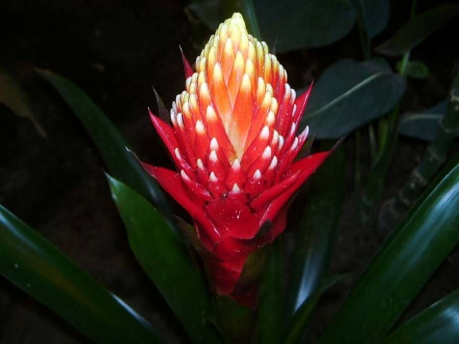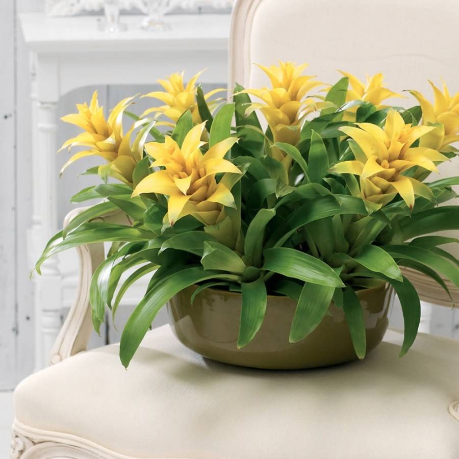 - гузмания Донелла-Смита. Соцветие плотное метельчатое. Цветки ярко-желтые. Чашелистики ярко-красные;