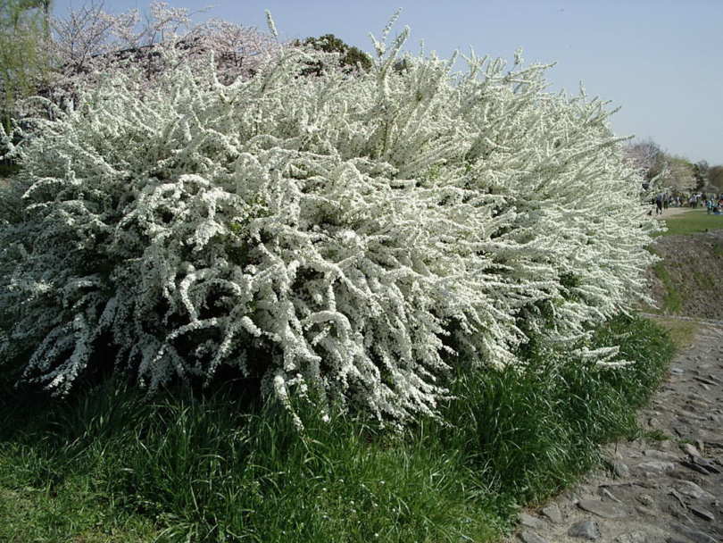 Весеннецветущая спирея: спирея аргута, спирея Тунберга, спирея Ван-Гутта, спирея острозазубренная, спирея длиннопочечная. У таких растений в 1-й год жизни формируются боковые ветви и закладываются цветочные почки, но расцветают кусты только на 2-й год, весной или в начале лета. Цветки обычно белые, соцветия располагаются по всей длине ветви, а ветви пониклые. Этой группе спирей практически не требуется обрезка. В мае – июне, сразу после окончания цветения, проводят санитарную обрезку: удаляют подмерзшие, старые, больные, сухие и сломанные ветки.