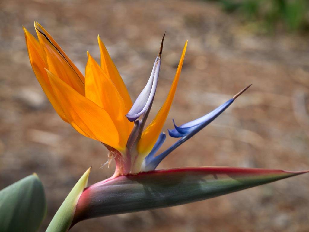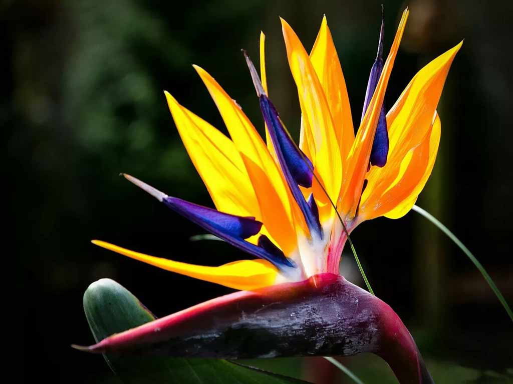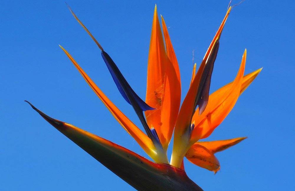 - Но самая главная изюминка Райской птицы – это необычные цветы диаметром до 15см, которые складываются из наружных ярко-оранжевых лепестков околоцветников (причем оттенки могут быть самими разными – от густо-апельсинового до нежно-лимонного) и внутренних синих лепестков (часто синий плавно переходит в голубой, сиреневый или фиолетовый). Цветы расположены в горизонтальном соцветии, словно лодочки. А веер эффектных лепестков придают цветку невероятно красочный вид, напоминающий птицу Феникс.