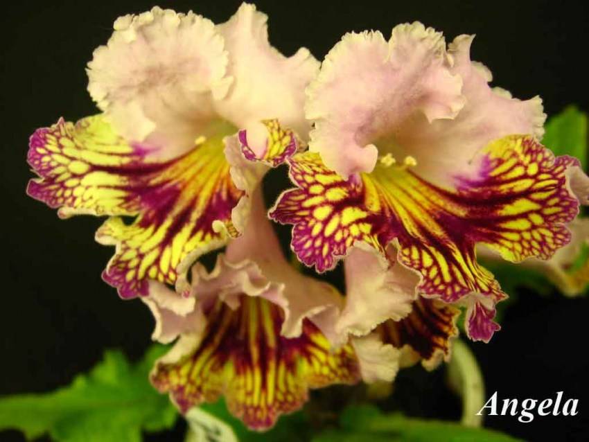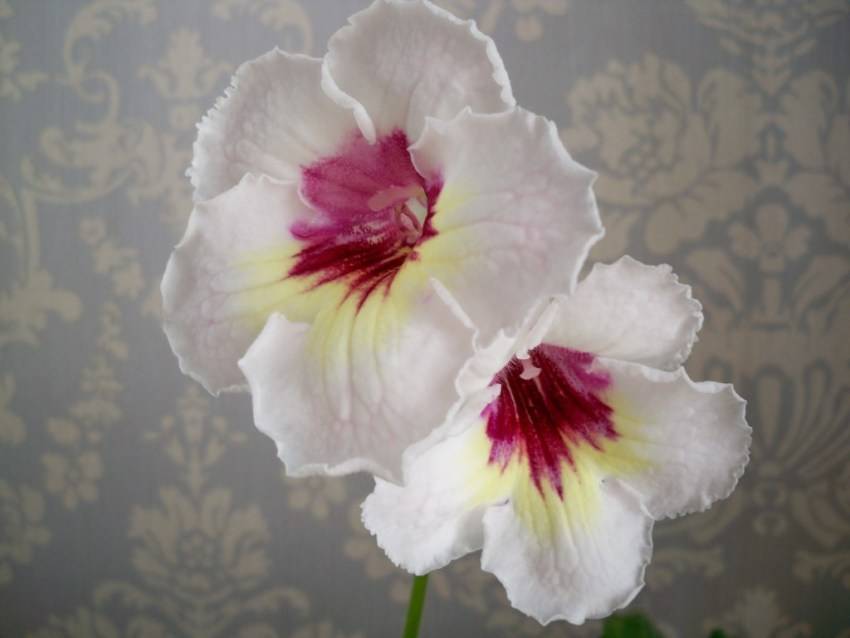 Птица – растение с крупными цветками. Бутон имеет форму трубки с отгибов в 2 губы. Верхняя яркого оттенка (розовая, лиловая, фиолетовая и проч.), нижняя белая. Лепестки расположенные внизу венчика имеют рисунок – мазки или пятна, расположенные в хоатичном порядке.