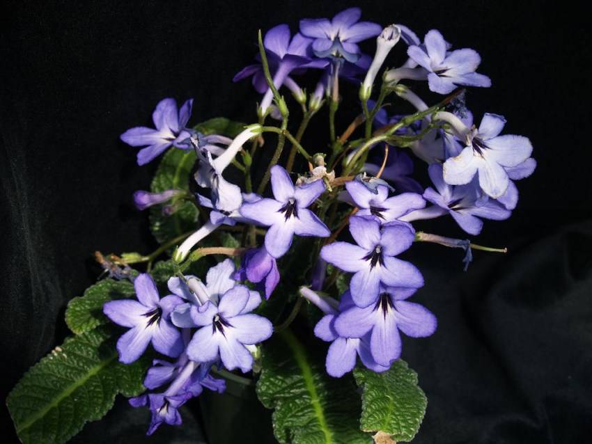 Blue Concord – имеет и другие названия: баварский колокольчик или голубая гармония. На длинных ветвистых побегах образуются мелкие листья, собранные в прикорневую розетку. Цветки небольшие (2,5 см в диаметре). Они расположены на тонких цветоносах. Оттенок венчика – светло-голубой, а внутри трубка полностью белая. Встречаются гибриды стрептокарпуса с синими цветками.