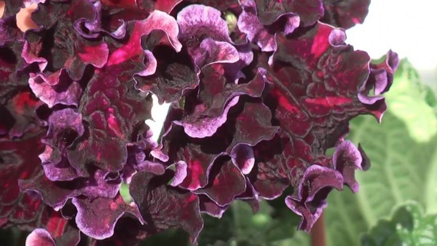Черный лебедь – эффектный сорт стрептокарпуса. Цветки полумахровые, насыщенного фиолетового оттенка. Трубка не длинная, оканчивается широким отгибов. Лепестки пышные, благодаря волнистым краям. Это розеточный тип стрептокарпуса. Светло-зеленые листья формируются аккуратную розетку. Из пазух образуются невысокие цветоносы с 1-3 цветками. Сорт Черный лебедь популярен и является редким.