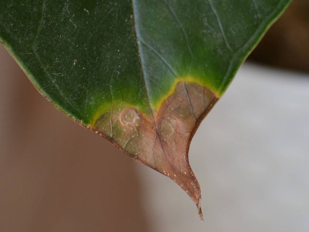 Важно вовремя распознать, вызваны дефекты неправильным уходом или занесением инфекции. В первом случае улучшение условий сразу изменит ситуацию: пятна перестанут увеличиваться в размерах, хотя поврежденные участки уже не восстановятся