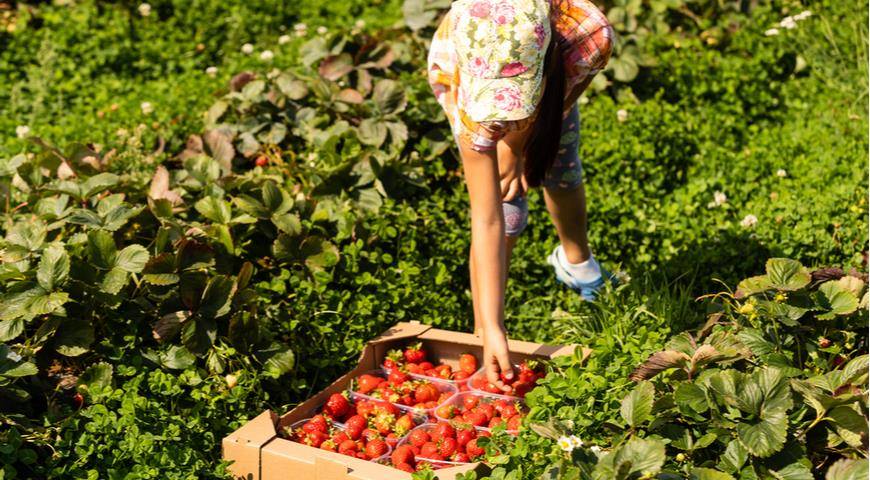 Выбирайте для сбора ягоды равномерно красные, но не мягкие. Розовые все равно собирайте, так как они будут продолжать созревать в течение нескольких дней после сбора. Собирайте клубнику утром до того, как они прогреются. При сборе ягод старайтесь изо всех сил их не мять (хоть в жару это и сложно). Если наловчиться, лучше срезать плодоножку ножницами.