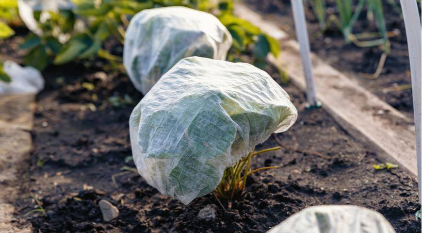 Растяните под дугам агросетку для защиты от птиц – она поможет рассеить прямые солнечные лучи. Если есть возможность, молодые посадки притените, накройте соломой или даже постройте забор или быстро посадите поблизости другие растения, которые будут затенять ягоды. Кстати сказать, с этой целью можно использовать медицинские одноразовые шапочки – их очень быстро на каждый кустик.