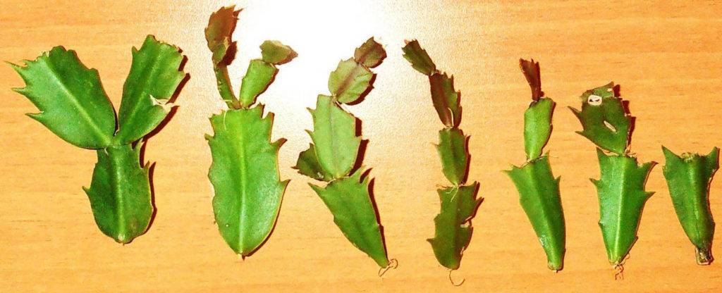 Побеги, подходящие для размножения должны иметь как минимум 2, а лучше 3 сегмента. В некоторых случаях удается укоренить даже один листок, но уже с менее предсказуемым результатом. Отростки с 5-ю и более сегментами брать тоже не имеет смысла – с длинными черенками неудобно работать.
