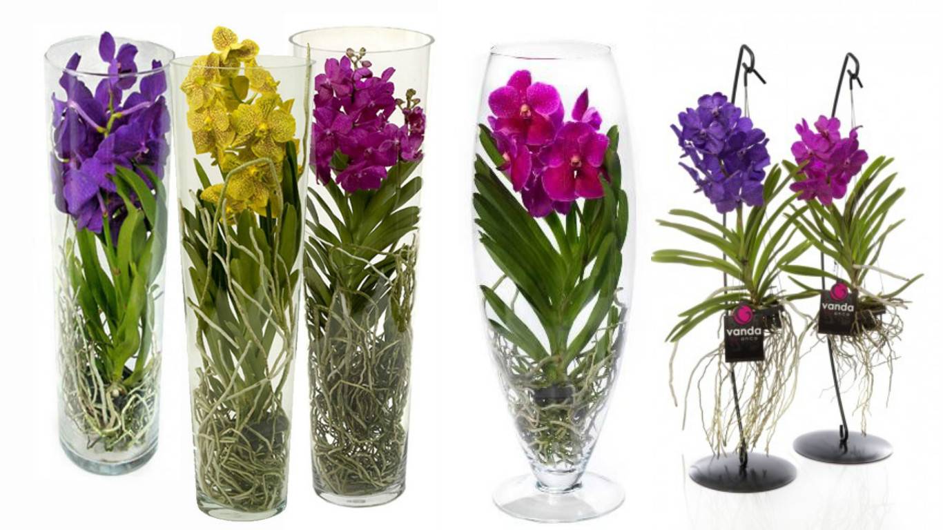 Работа селекционеров не стоит на месте. Поэтому в цветочных магазинах можно найти большое количество гибридных разновидностей Ванды. Зачастую точное название им не дают, называют просто миксом. А когда продают в прозрачной вазе, то на упаковке пишут: “микс в стекле”.