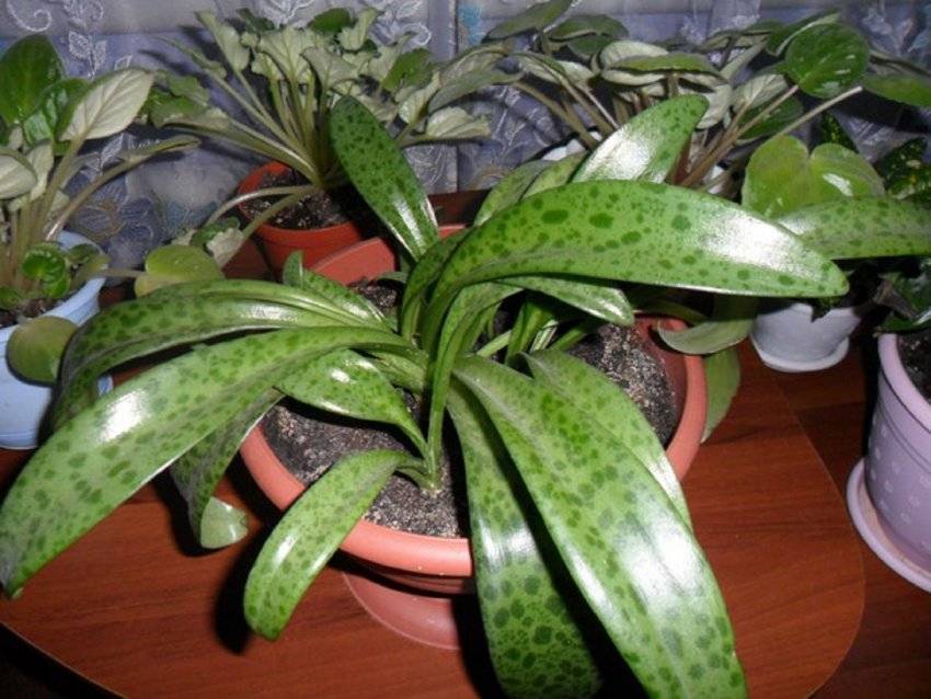 - листья потеряли свою пятнистость, стали мелкими, а черешки и стебли вытянулись – растению не хватает света или оно содержится только при искусственном освещении;