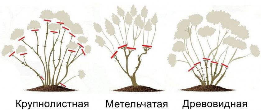 Близкие виды гортензии: разношерстистая, пепельная и другие обрезаются так же.
