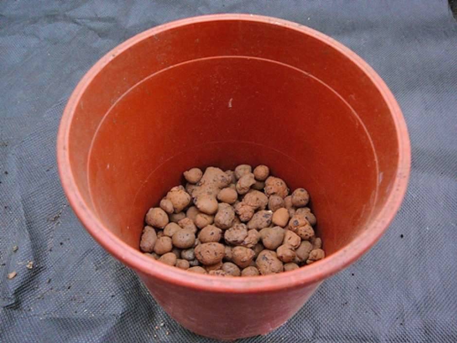 Не менее ¼ горшка должен занимать дренаж: керамзит, битые черепки и другие подходящие материалы.