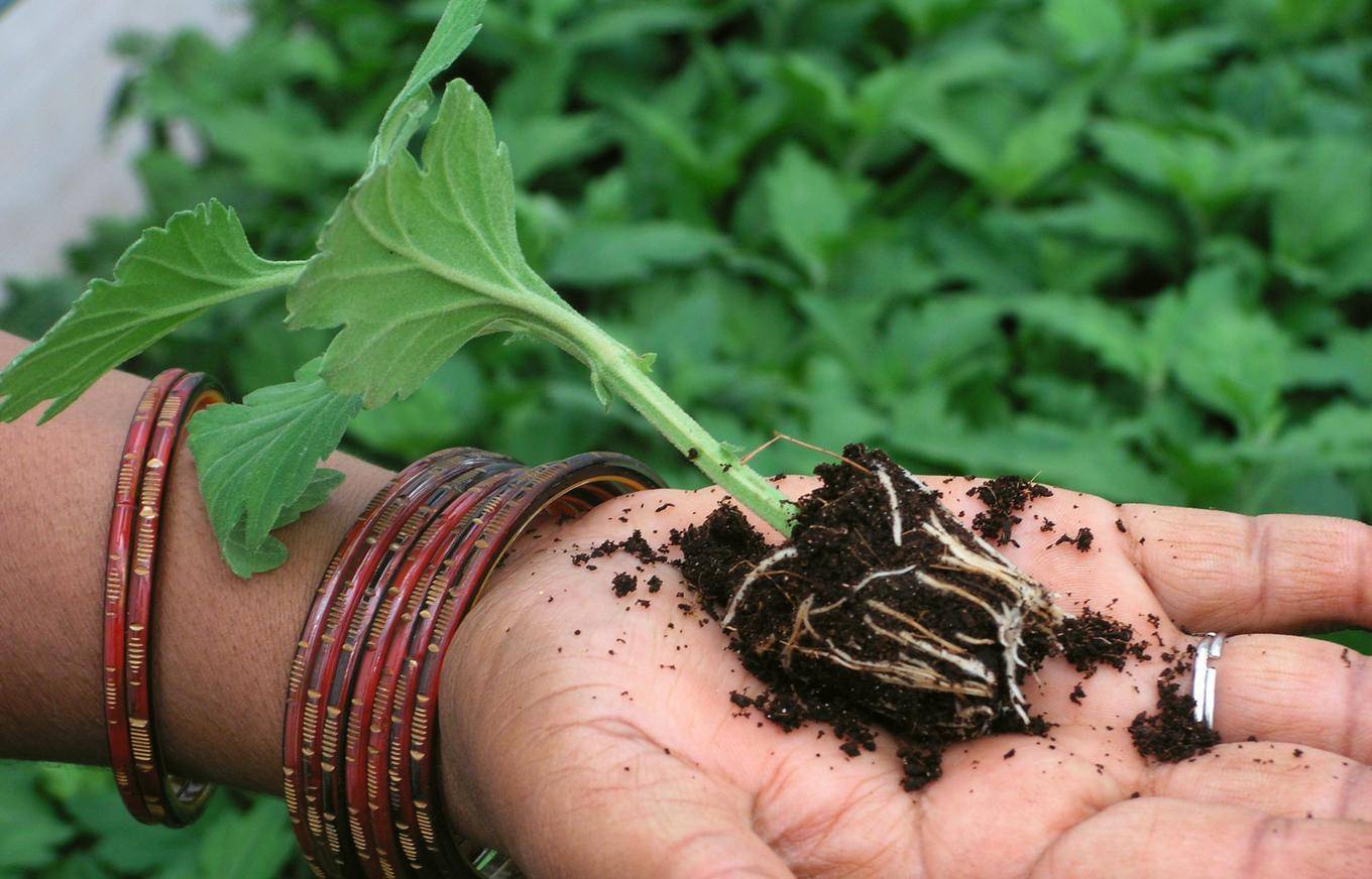 Самое оптимальное время для посадки хризантемы индийской — 1 декада июня (с 1 по 10 числа). Перед посадкой ростки увлажняют и выкапывают из контейнеров с комом земли. Для каждого растения готовят посадочные ямы. Их размер должен быть на 2 см больше выкопанного кома земли. Глубина ямы должна быть такой, чтобы корневая шейка растения оставалась на поверхности или была заглублена не больше 1 см. После посадки нужно увлажнить почву вокруг растения.
