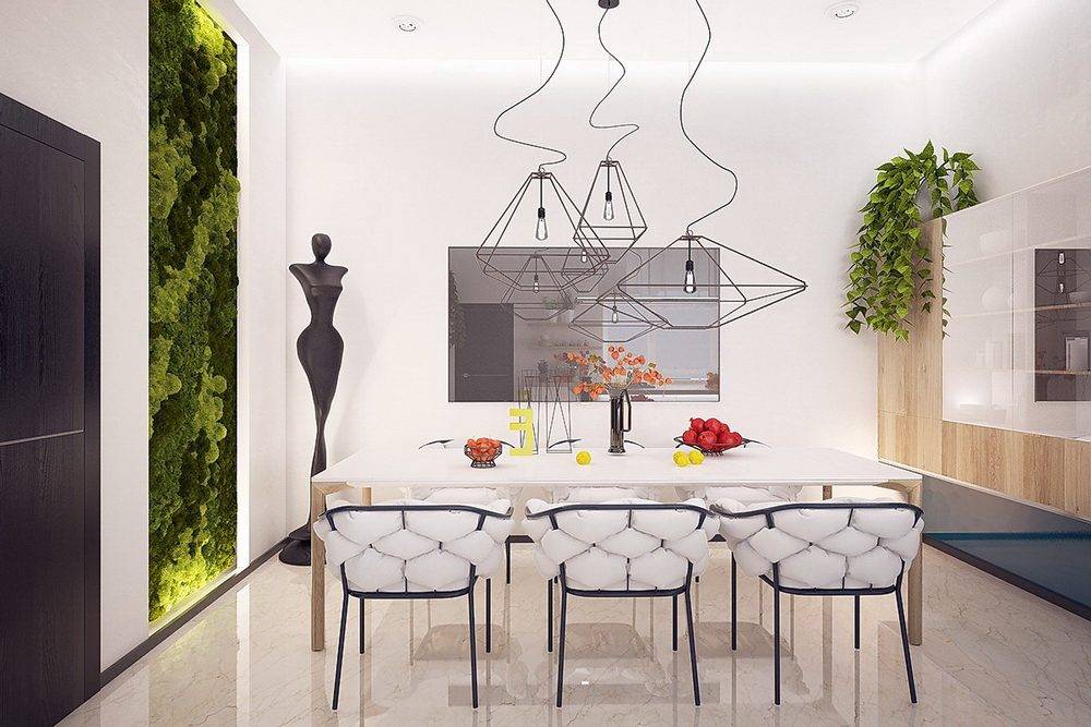Все популярные минималистичные, скандинавские и эко-интерьеры отталкиваются от белой базы и ярких акцентов. На таком фоне выигрышно смотрится и зеленый, который кажется еще свежее и сочнее. Если синий может быть слишком холодным, а желтый – наоборот, зеленый будет как нельзя кстати.
