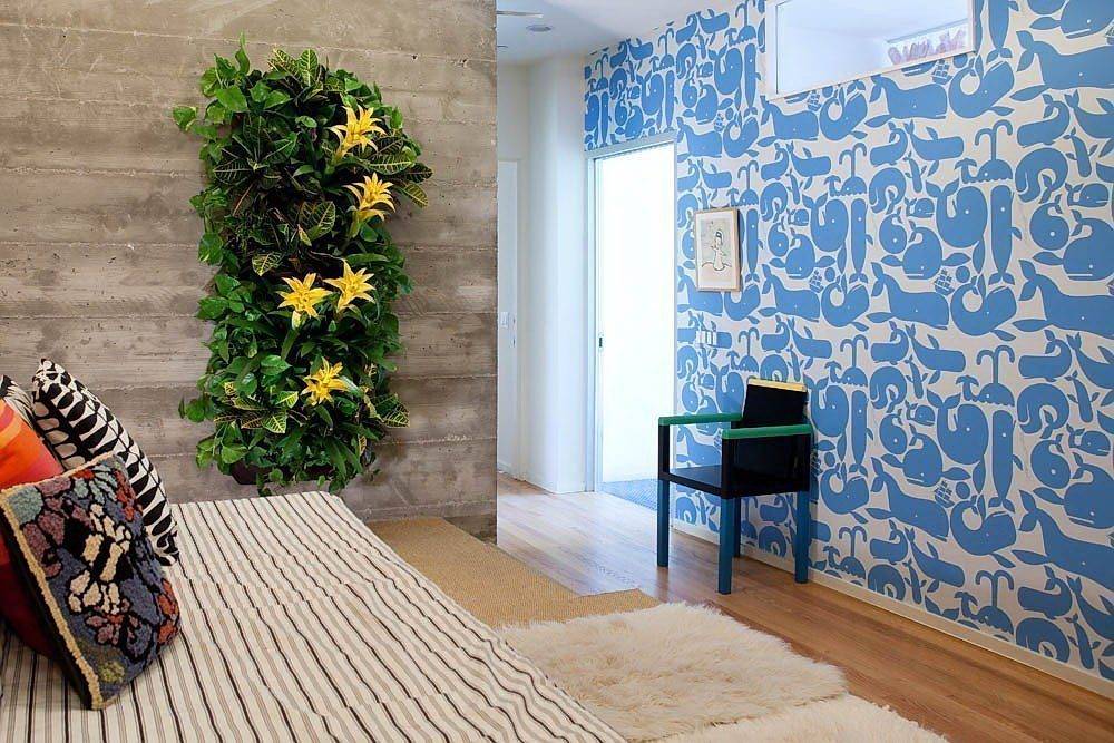 - Для организации зеленого вертикального сада используйте ту стену, которая не несет функциональной нагрузки.