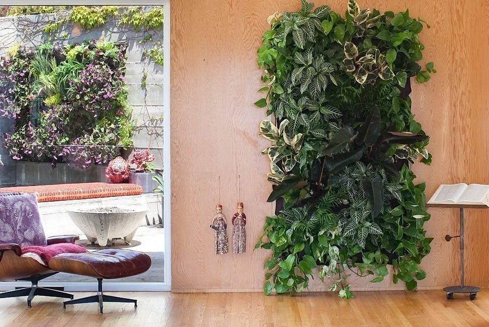 Совет! Для создания вертикального сада можно использовать готовые фитомодули из полиэстера с карманами. Они стоят недорого и впишутся в любой интерьер благодаря тонкой и легкой структуре.