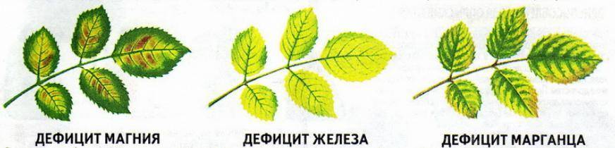 | Марганец | Пожелтение старых листовых пластин между жилками | Опрыскивание 0,2 % раствором сернокислого марганца |